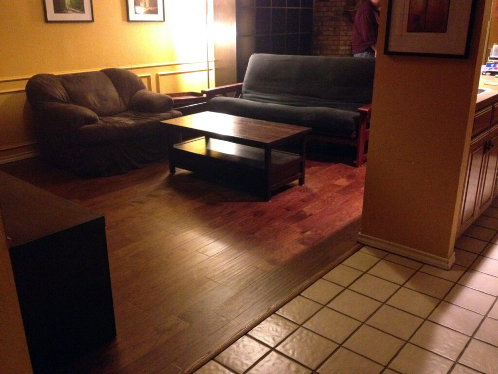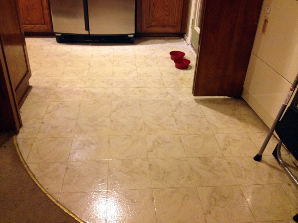 Our original cost-conscious plan was to replace the house’s existing carpet with new carpet, and splurge a bit for tile in the kitchen (a luxury) and tile in the master bathroom (a must). We don’t know how much longer we’ll be in this house so we didn’t want to spend a massive amount on premium materials. We were aiming for “good enough.”