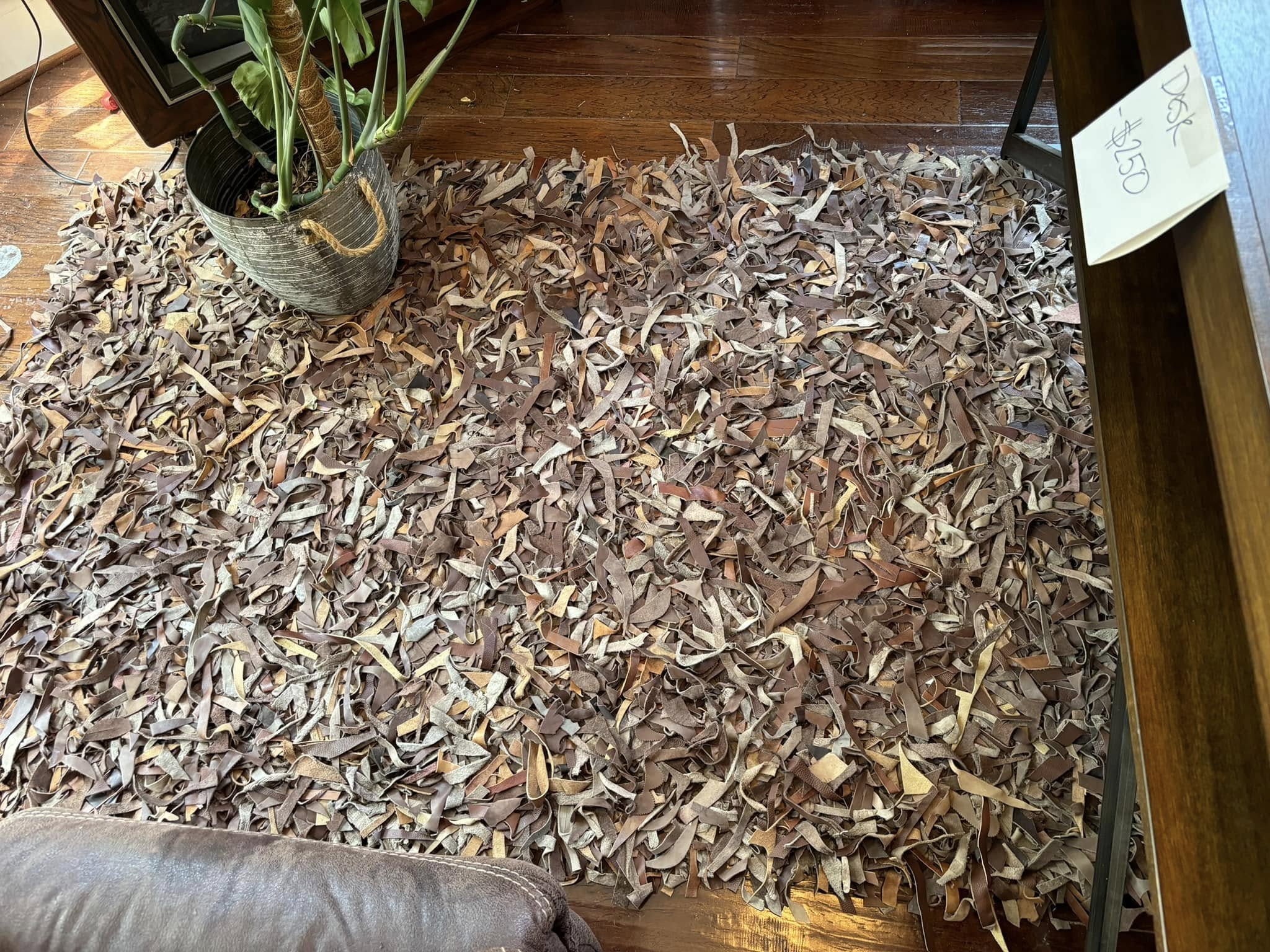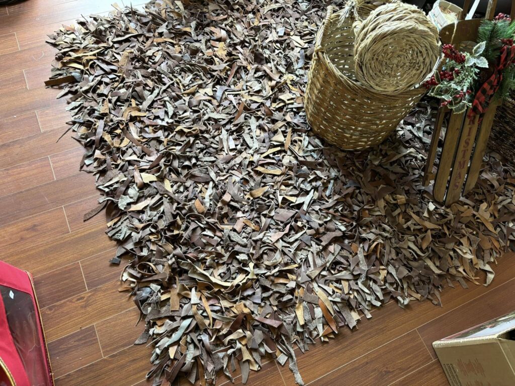But wait! It’s not a big heap of shavings! It is… a rug. It is made of… that’s right, leather. There were multiple of these rugs throughout the house.