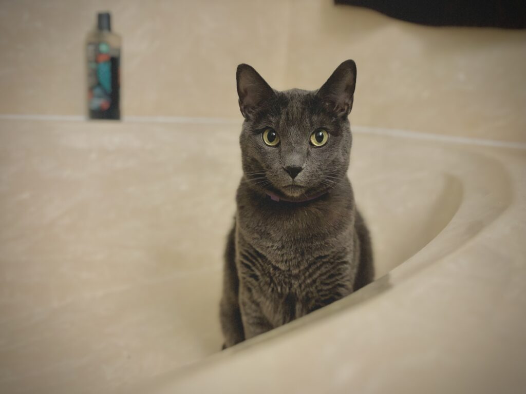 Walked into the bathroom, snapped on the lights, and he was just sitting in the tub staring at me. He stared at me the whole time I was in there, and was still there when I turned off the lights and left.
