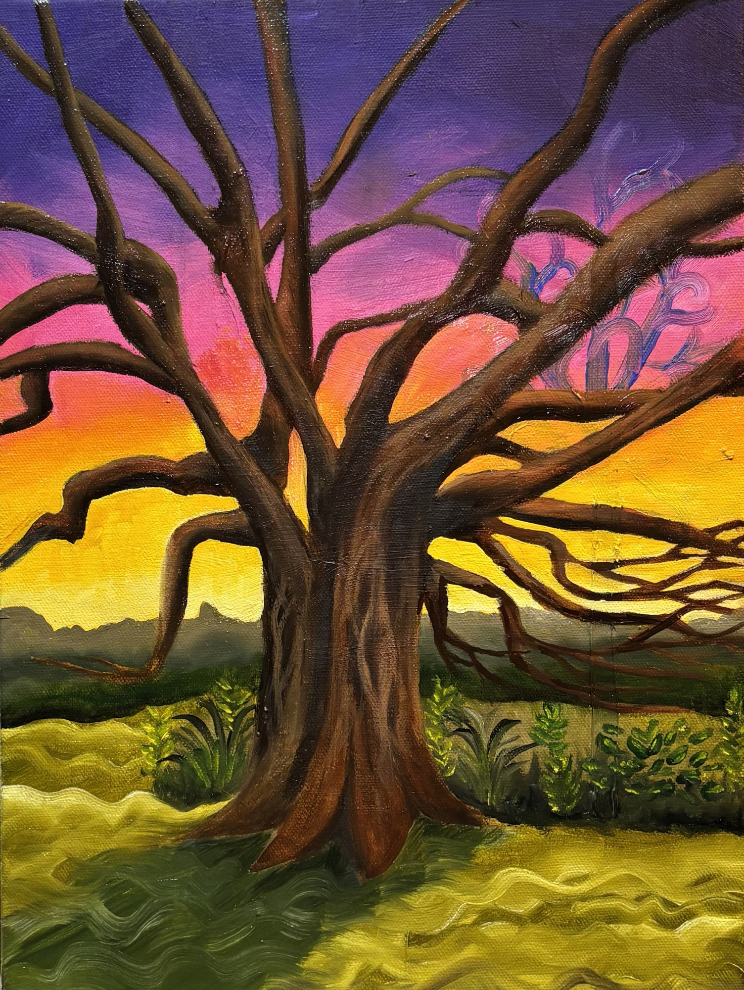 I’ve been working more on this tree. I wish I hadn’t painted all the small branches before I finalized the background, but I know painting the background last around all the other elements is a Grown Up Artist Skill that I never mastered. It’s one of those things that makes me certain that I am somehow an imposter, just pretending to be an artist and hoping no one will notice that I don’t really know what I’m doing.