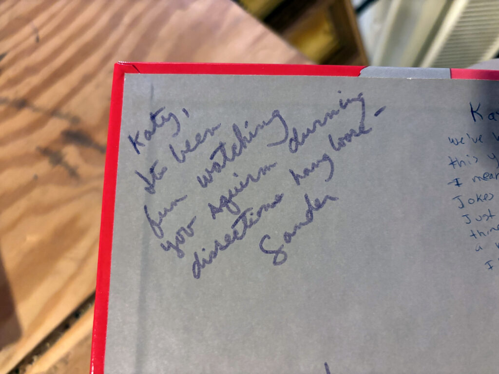 And some original art, drawn just for me (I think? It’s been a while) by my extremely talented artist friend Rob Wilson, whom I very much wish I know what happened to after high school. Rob and I were the driving force behind the Floating Fish Sculpture.