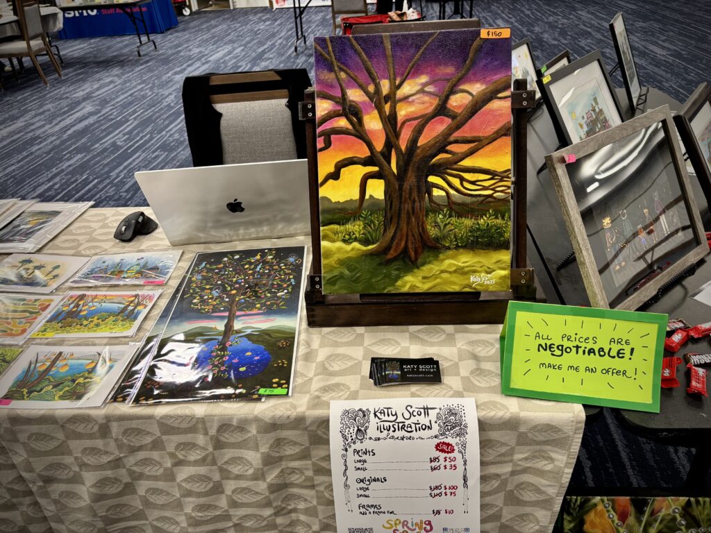 However! The organizers brought in Pokey-O’s (a local shop that makes ice cream cookie sandwiches), sent out a last minute email to the campus about the free ice cream, and people poured through the doors in droves. And some of them bought artwork while standing in line for ice cream!