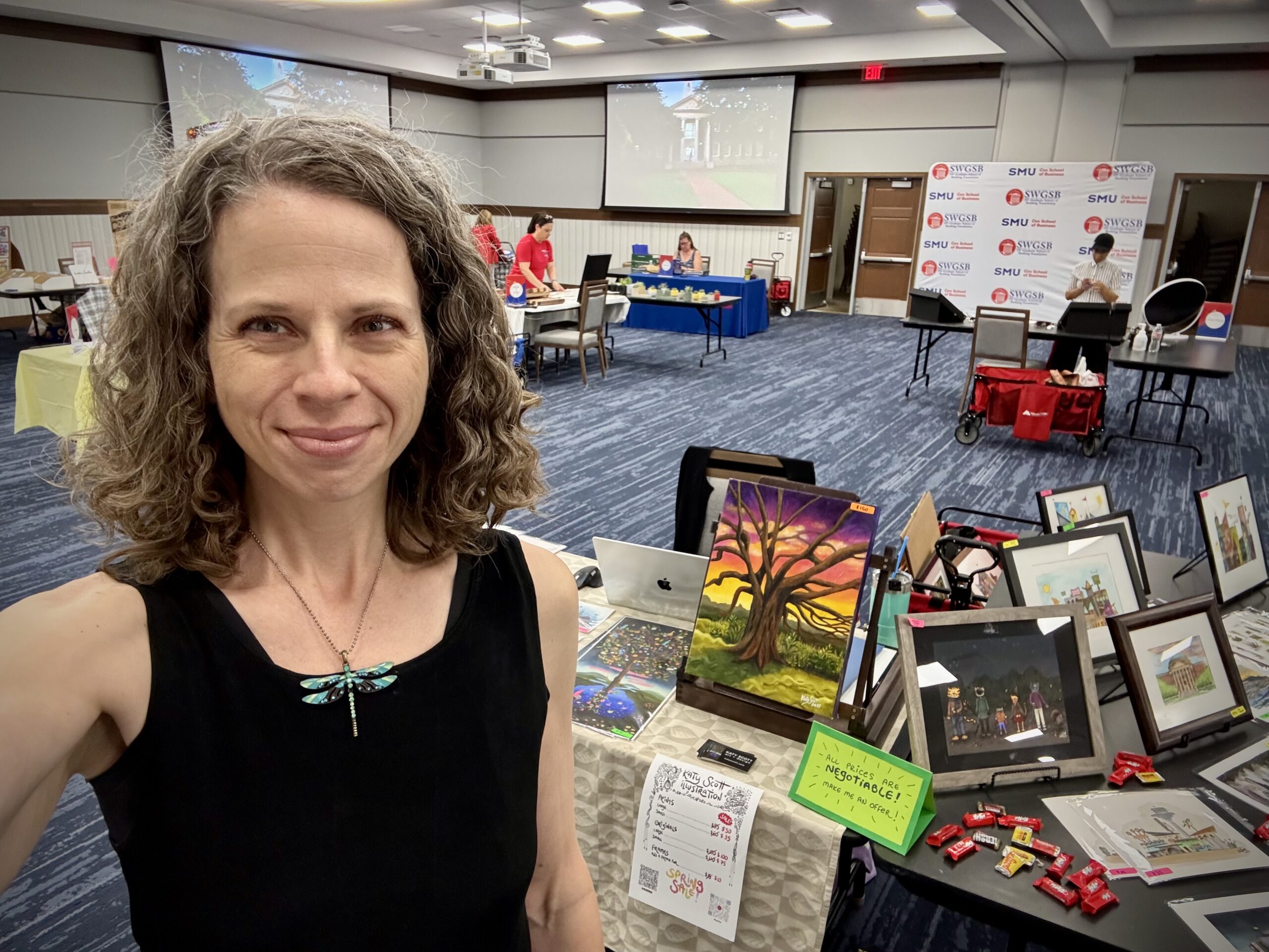 My workplace holds a “pop-up shop” twice a year, where faculty and staff members can sign up to be a vendor and show/sell artwork, jewelry, crafts, food items, and the like. I have participated every time with varying degrees of success, selling my work at about 1/3 my usual price because I know my audience — this is a nonprofit and none of us have big salaries.