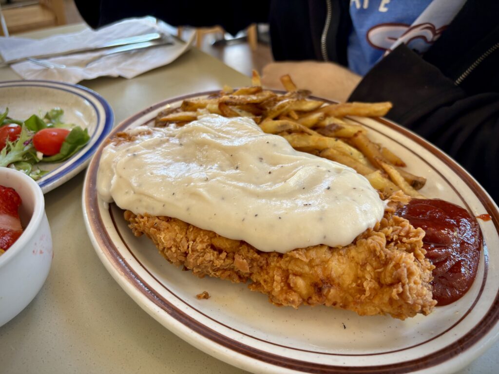 I have never had chicken-fried steak. I had a bite of Jamie’s chicken-fried chicken so now I can say that I have tasted that. It was good, but I’m not sure what differentiates it from just regular old fried chicken. Maybe the existence of gravy on top? I am definitely not a fan of cream gravy, as it turns out.