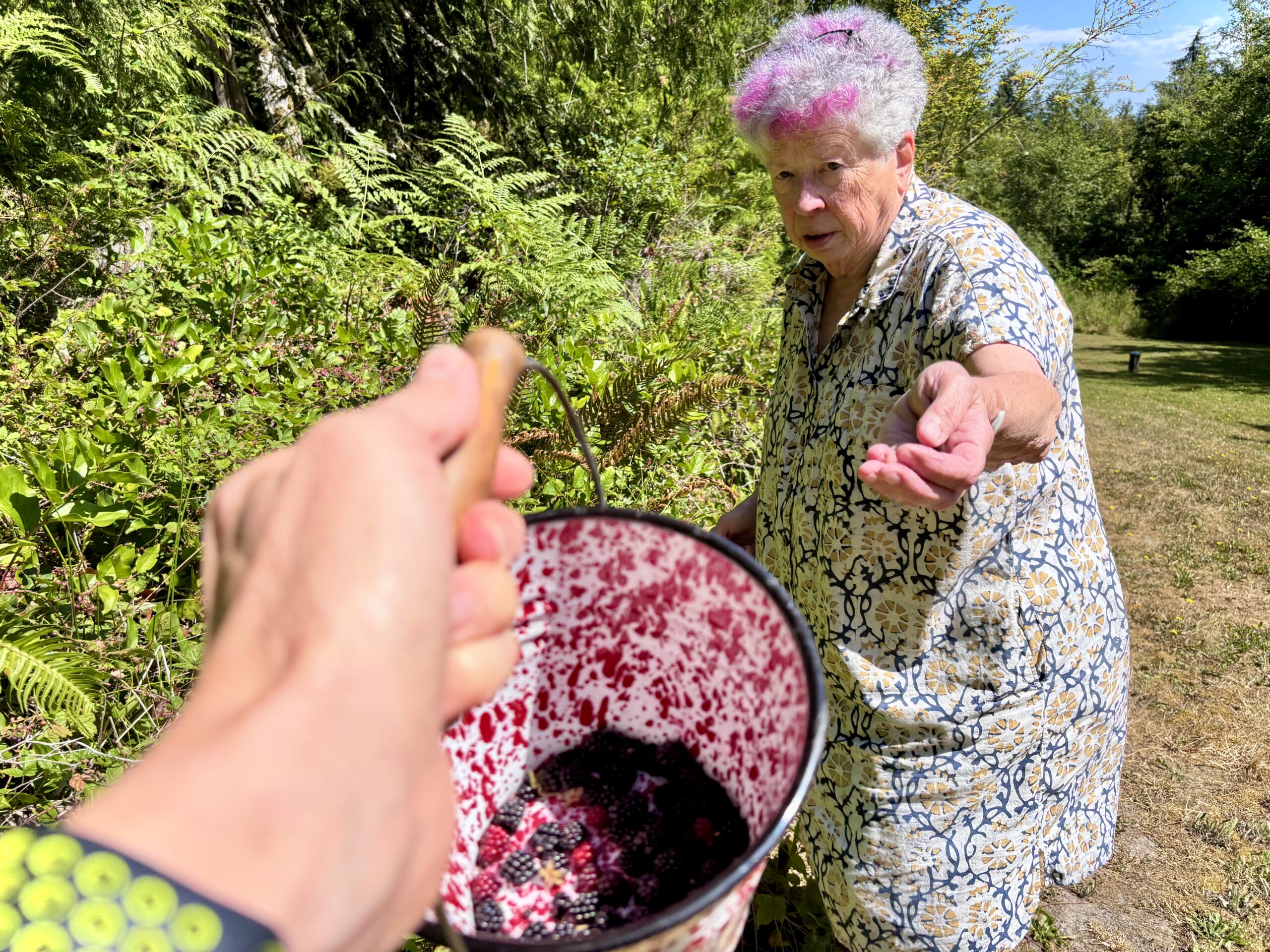 Mom also has wild blackberry vines growing all over the property. These are the tiny wild variety, not the big ones you find in grocery stores, and they have a very specific taste. We picked multiple quarts while I was there I made a cobbler one day, and then managed to successfully get a ziploc of berries home in my carry-on luggage so I could make another cobbler at home.