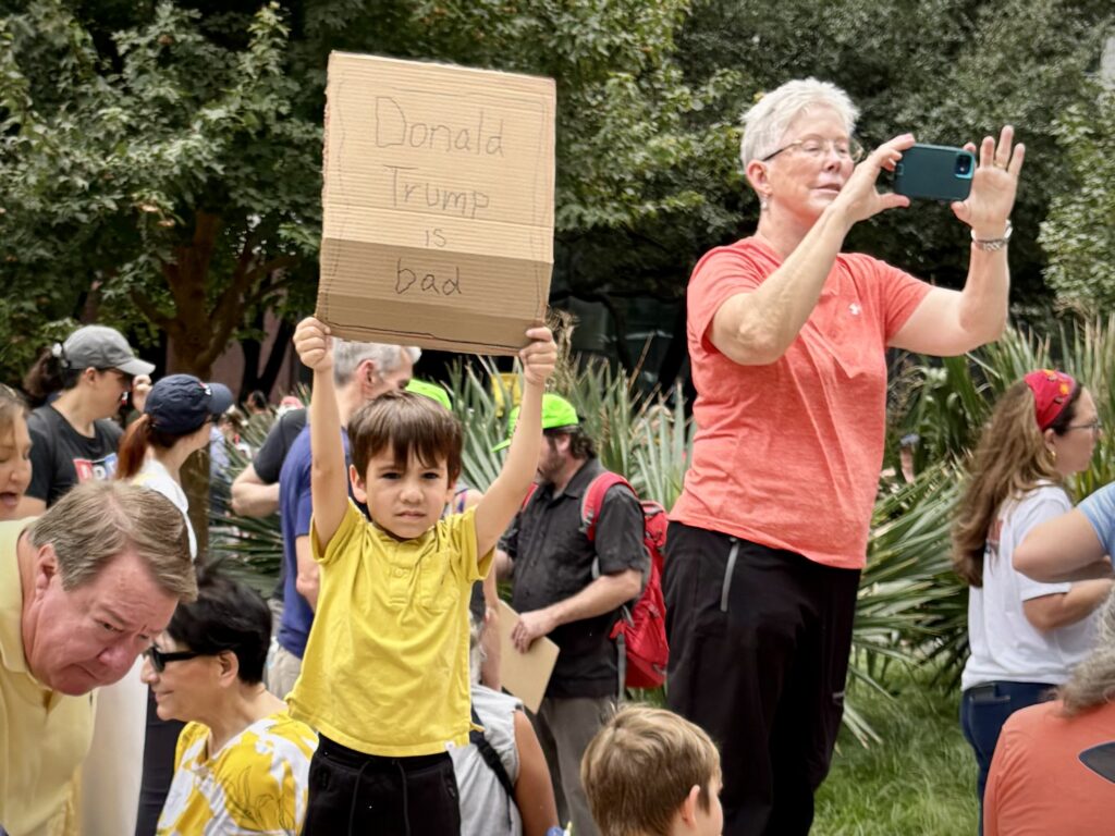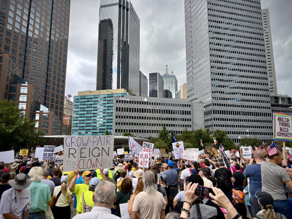 The No Kings protest today in Dallas had an outstanding turnout. Thousands and thousands of people were downtown at Pacific Plaza.