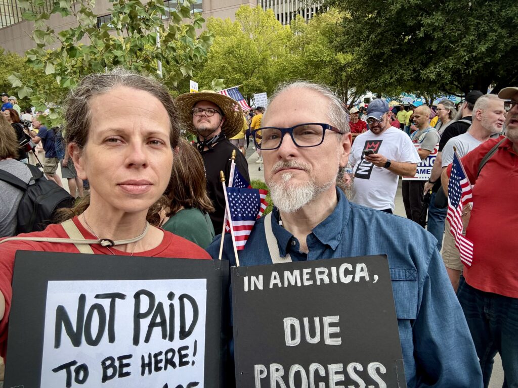 Part way through the rally, the sky broke open and it poured down rain for probably close to an hour during the second half of the rally and part of the march as well. I was soaked to the bone and eventually began shivering uncontrollably. I didn’t march because I twisted my ankle pretty badly at work yesterday and didn’t want to walk for a mile on it. I am old and don’t recover as easily as I used to.