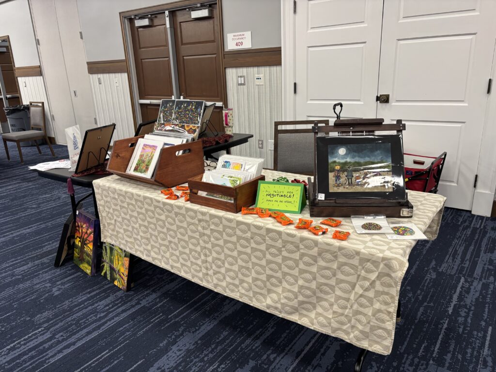 I had another art show at work. You win some you lose some. Today was a “lose” day. But at least I got this goofy photo of myself out of it (photo credit to Ian Aberle).