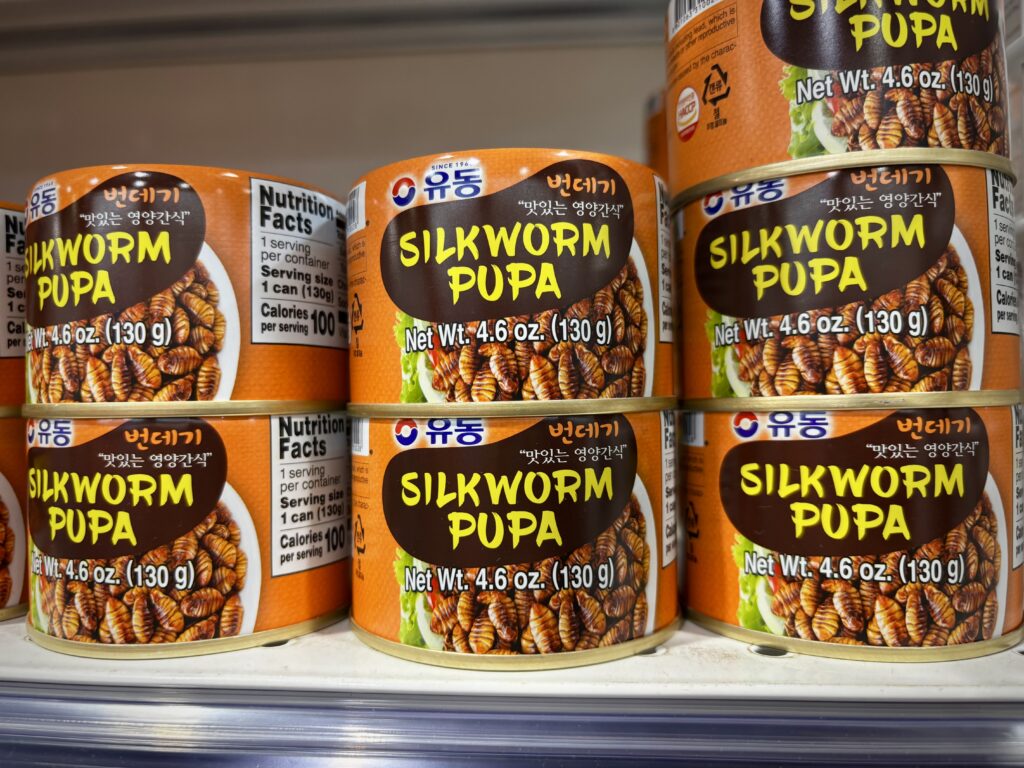 H Mart has an entire double freezer case of durian. And canned silkworm pupae! I’m trying to be adventurous these days but I’m not quite there yet.