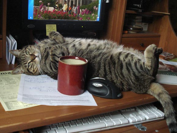 Today after lunch I saw a car with a banana peel draped over its door handle: I’ve been playing around with the nightshot mode on Doc’s camera. I like the effect I get when there’s still a little ambient light. My garden is growing! Some of it, anyway. I may not have any tomatoes or morning glories, but by god I’m going to have lots and lots of zucchini this summer.